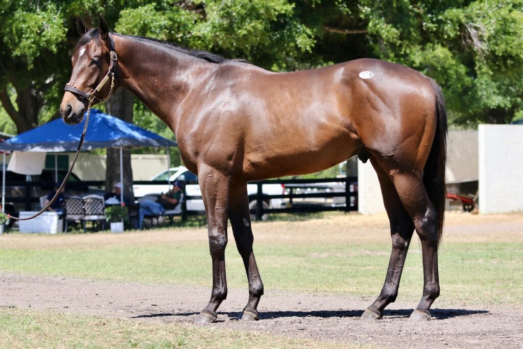 She stands quietly in her stall, ears flicking toward distant sounds, nostrils flaring at the scent of fresh shavings. Her coat gleams—a deep, burnished bay with a hint of copper when the light hits just right. She doesn’t know she’s shared. Doesn’t know that over two thousand people have watched her gallop in morning workouts, studied her pedigree, cheered her debut, and whispered her name like a secret they’re lucky to hold.